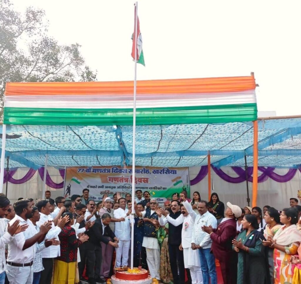 विदित हो कि 26 जनवरी 1950 को भारत के संविधान का निर्माण किया गया था जिसकी याद में भारतवासियों द्वारा प्रतिवर्ष 26 जनवरी को गणतंत्र दिवस के रूप में मनाया जाता है। खरसिया में भी देश का 77 वां गणतंत्र पूरे आन बान शान के साथ मनाया गया। गणतंत्र दिवस का मुख्य समारोह स्थानीय टाउन हाल मैदान में संपन्न हुआ जहां नगर पालिका अध्यक्ष, मुख्य नगर पालिका अधिकारी, स्थानीय प्रशासनिक अधिकारी एवं पार्षदो सहित नगर के गणमान्य नागरिकों एवं शैक्षणिक संस्थानों के शिक्षक शिक्षिकाएं एवं छात्र-छात्राओं की उपस्थित में नगर पालिका परिषद खरसिया के अध्यक्ष द्वारा तिरंगा फहराया गया। इसके पश्चात नगर के शैक्षणिक संस्थानों द्वारा सांस्कृति कार्यक्रमो की प्रस्तुति की गई। इस अवसर पर बडी संख्या में विद्यालयीन स्टाफ, नगर पालिका स्टाफ एवं गणमान्य नागरिकगण उपस्थित रहे।
